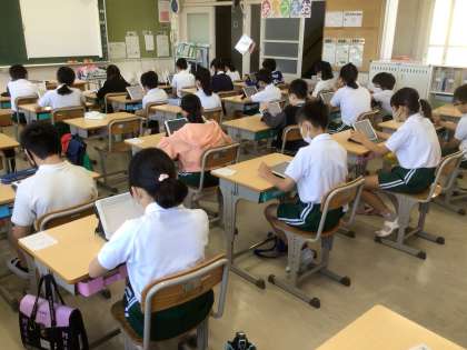 5年生から教科化された外国語は、キュビナでリスニングの勉強もできます。聞き逃さないように、集中して取り組んでいます。
