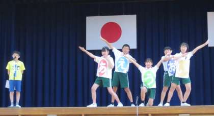 児童集会 公開日 2023/05/30 更新日 2023/05/30 校長室から 今日の集会は、2年生と4年生が体育館で、他学年は教室からのオンラインで参加しました。今回は杉の子委員会が、「あいうえお」の合言葉を意識した生活をしようと、劇にしてわかりやすく呼びかけをしてくれました。