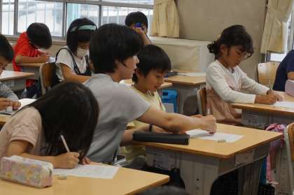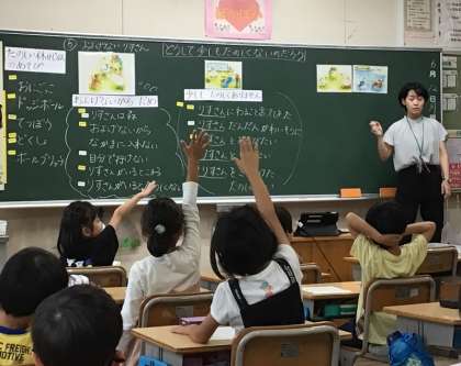 2年生で道徳科の研究授業を行いました。「およげないりすさん」が島に行けずに困っている場面を、どうしたらよいか考えることを通して、友だちと仲良くし、助け合うことについて考えました。休み時間に遊ぶときに、今日の学びを思い起こしてくれるのではないでしょうか。