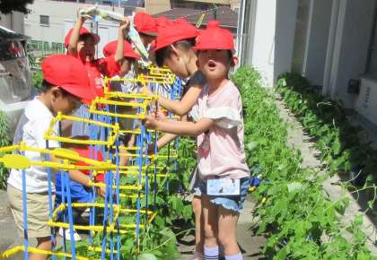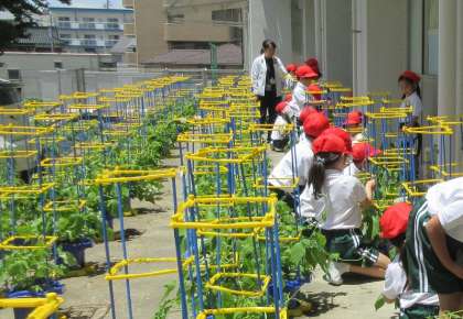 支柱を立てたよ 公開日 2023/06/16 更新日 2023/06/16 校長室から 「見て、ちょんまげ出てきた」とアサガオの伸びたツルをうれしそうに1年生が見せてくれました。葉が大きくなり、ツルもぐんぐん伸びました。今日は、支柱を立てて、ツルを支柱に巻き付けました。