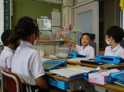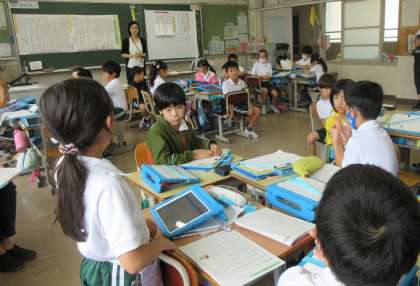 3年生の国語の研究授業です。司会者、参加者の役割を意識しながら、話し合いの練習をしました。