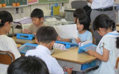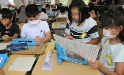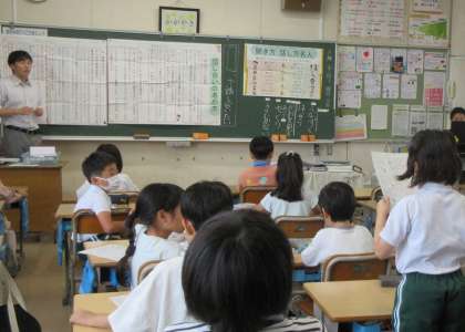 3年生国語の研究授業です。掃除の時間の合い言葉を決めようと、班の一人一人が意見を伝え、司会者がまとめました。話し合いの進め方が、スムーズになり、今後の話し合い活動にも生かせそうです。
