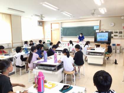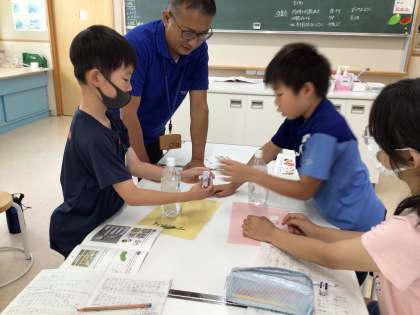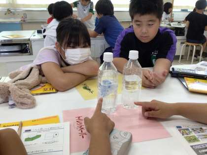 4年下水道口座(7.12) 公開日 2023/07/12 更新日 2023/07/12 各学年から 下水道講座を受けました。水の入ったペットボトルにティッシュペーパーを入れてどうなるか実験をしました。実験や講話から下水道の仕組みを学び、油や水に溶けないものを下水に流してはいけないことを実感しました。