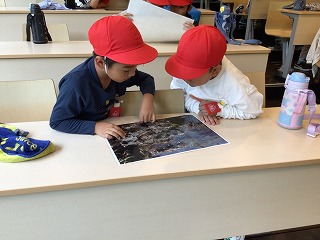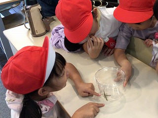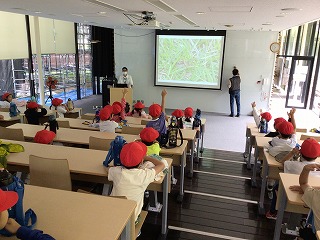 1年校外学習(9.12) 公開日 2023/09/12 更新日 2023/09/12 各学年から 1年1組が自然観察の森に行きました。あいにくの雨でしたが、写真の中から虫を見つけるクイズをしたり、事前に用意してもらったバッタを観察したりしました。子どもたちは、バッタの耳の位置を知って驚いていました。教えてもらったことをもとに、今度は学校で虫を探してみます。
