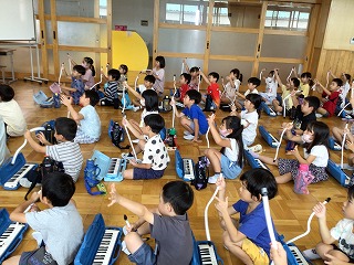 1年鍵盤ハーモニカ講習会 公開日 2023/09/21 更新日 2023/09/21 各学年から 講師の先生をお招きし、鍵盤ハーモニカの講習会を行いました。道具の使い方や片付け方を分かりやすく教えてもらいました。これから音楽の時間に使っていきます。