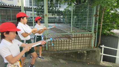 とじこめた空気や水 公開日 2023/09/27 更新日 2023/09/27 校長室から 4年生理科の授業です。「空気や水の性質を利用したおもちゃ」の水でっぽうをしながら、楽しく単元のまとめをしました。