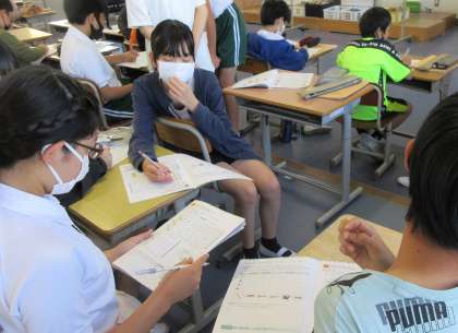 ボイスアンサンブル 公開日 2023/09/29 更新日 2023/09/29 校長室から 6年生音楽の授業です。「ラバーズ コンチェルト」のリズム伴奏を、楽器の替わりに声で演奏するため、グループで声の出し方を考えています。発表を聞いてみたくなりました。