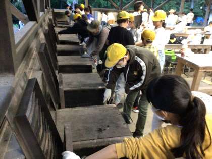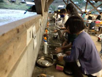 食後の片付けです。来た時よりも美しくを目標にして、協力して片付けをしています。