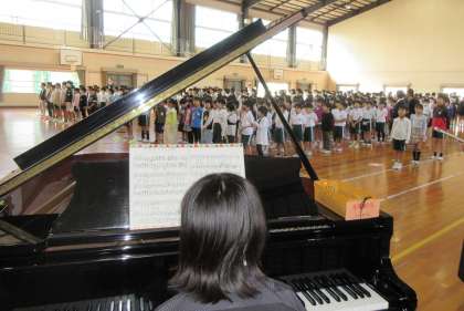前期の終業式を行いました。2、4、6年生の代表児童が、前期頑張ったことや後期に頑張りたいことを発表しました。各学年のここまでのがんばりを称え、振り返る式となりました。校歌を式で歌えるありがたみも感じました。
