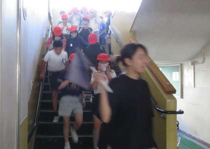 避難訓練 公開日 2023/10/13 更新日 2023/10/13 校長室から 火災が起きたときの避難訓練を行いました。火災発生場所によって避難する経路が違う場合があります。地震発生との違いも確認しました。