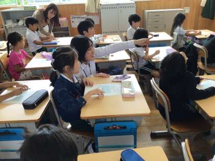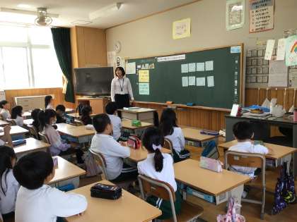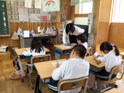 2年4組で、教育実習生が算数「三角形と四角形」の授業を行いました。8この様々な図形を三角形と四角形に仲間分けしました。仲間分けしたあとも、根拠をもって理由が説明できるように、それぞれの図形の条件をおさえる学習をしました。