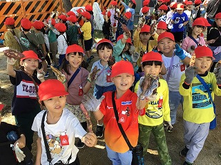 子どもたちの活動に先立って、ボランティアの方々がツルを取ってくださいました。さらに、そのツルを使ってリースを編んでくださっています。ご協力、本当にありがとうございます。これから続くドングリ拾いやリース飾りつけでも、たくさんのボランティアさんにお手伝いいただきます。保護者の皆様や地域の方のご協力のおかげで、子どもたちは秋の活動を楽しむことができています。