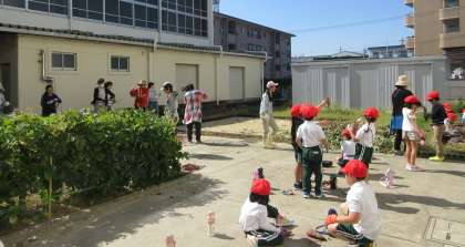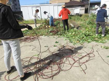地域学校共働本部募集の杉の子サポーターのみなさんに、サツマイモのツルでリースを作っていただきました。1年生の生活科で活用させていただきます。ありがとうございました。