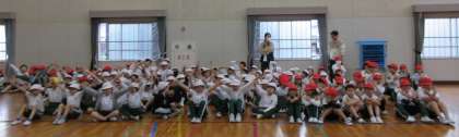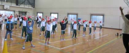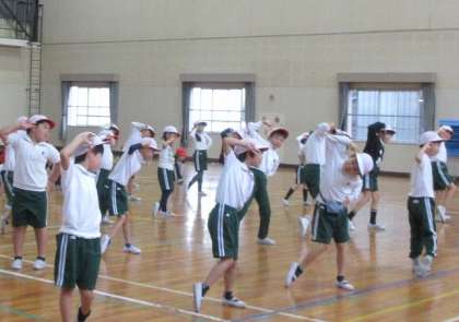 雨天のため、今日は体育館で練習をしています。2年生が楽しそうに踊っていました。決めポーズが特に気に入っているようです。