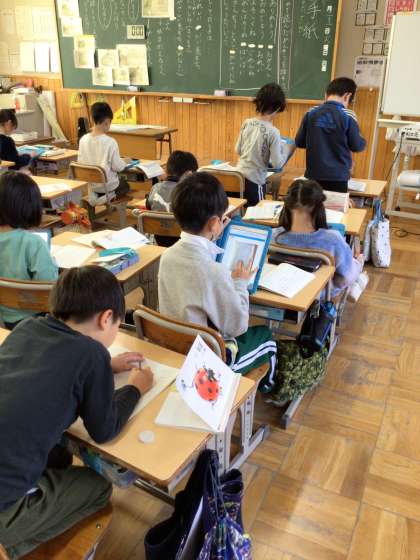 「お手紙」を読んだ感想を、タブレットを使って共有し、話し合いました。