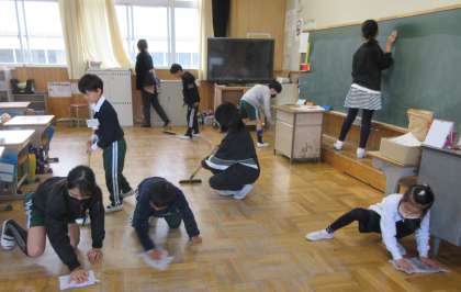 縦割り掃除 公開日 2023/11/29 更新日 2023/11/29 校長室から 縦割り班に分かれて掃除を行いました。6年生が中心となって声をかけ、集中して取り組みました。低学年に優しく声をかける6年生の姿をとても頼もしく感じました。