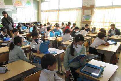 4年生から3年生へ 公開日 2023/11/30 更新日 2023/11/30 校長室から 4年生が総合的な学習の時間のまとめをパワーポイントでまとめ、3年生に発表しました。SDGsに関する内容はもちろん、発表の仕方も学ぶ機会となりました。