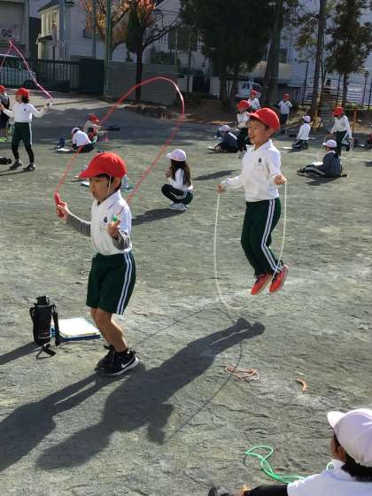 なわとびチャレンジで、自分の決めた2つのわざに挑戦しました。自分の最高記録を目指して一生懸命跳びました。