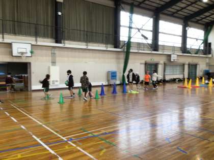 スポーツクラブでは、サーキットコースを自分たちで作り、実践しました。体力や技能が高まるようにルールを設定し、何をするか説明し合いました。工夫したコースをあきらめずに何度も挑戦していた様子が印象的でした。