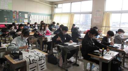 6年生書写の授業です。書き初め大会に向けて、集中して練習していました。年明け1月9日の書き初め大会が楽しみです。