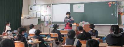 4年生国語の授業は、学校図書館司書の竹内さんによるブックトークでした。新美南吉に関する本や記念館の紹介がありました。「ごんぎつね」の学習後で、南吉作品に触れてみたくなる内容でした。この機会にいろいろ読んでみてほしいです。