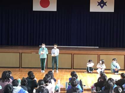 学年集会では、冬休みの過ごし方について級長が話をしました。