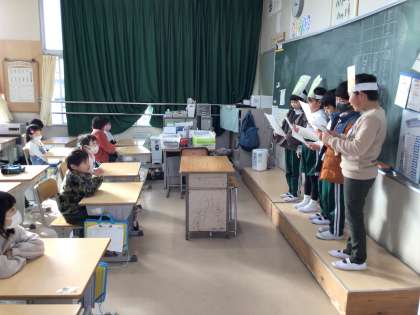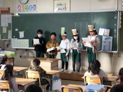 2年生から1年生へ音読の発表をしました。