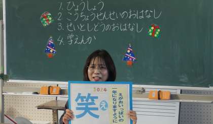 冬休み前の全校集会を行いました。冬休みは大晦日やお正月があり、一年で日本らしい行事がいろいろある時です。日本らしさを感じながら、楽しい休みにしてほしいです。1月9日に元気な子どもたちに会えるのを楽しみにしています。