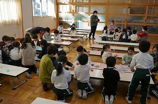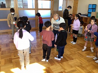 地域の方に来ていただき、昔遊びを一緒に遊びました。
