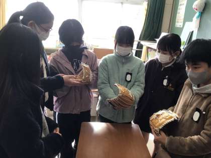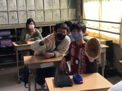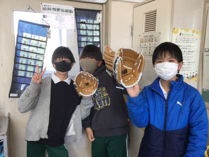 6年生が、大谷翔平選手から寄贈されたグローブに触れました。グローブの使い方を初めて知ったり、ようやく届いたグローブに目を輝かしたりする子がいて盛り上がりました。