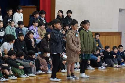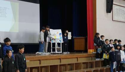 4年生の学習発表会が行われました。総合的な学習の発表では、各学級で調べを進め、今自分たちにできることを考え提案をしました。最後の「瑠璃色の地球」合唱からは、この美しい地球を守りたいという4年生の思いが伝わってきました。高学年に向けて、頼もしい姿を見せてくれました。