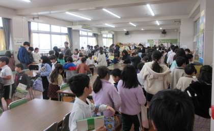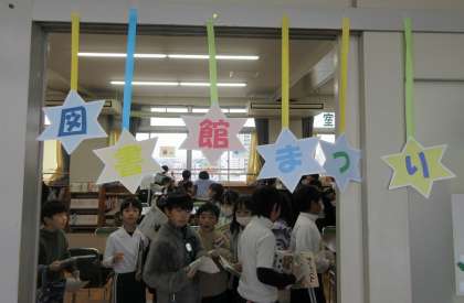 図書委員会企画の図書館祭りが始まりました。ビンゴにおみくじ、クイズと図書館に本を借りに行くと、楽しい企画が盛りだくさんです。たくさんの子が本を借りに来ていました。