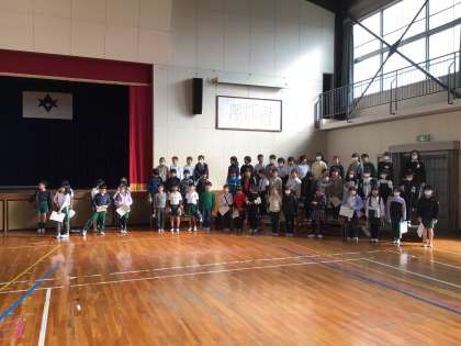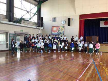 3年生が学習発表会に向けて、練習に取り組んでいます。今日は、立ち位置の確認を行いました。