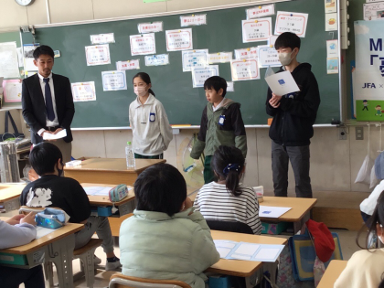 5年 夢の教室2 公開日 2024/02/07 更新日 2024/02/07 校長室から 今日は、ビーチサッカー日本代表としてワールドカップにも4回出場された小牧正幸氏を講師としてお招きし、体験談をお話しいただきました。自分の将来について改めて考える機会をいただきました。