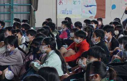クイズやスライド、思い出メッセージと楽しい企画がたくさんありました。6年生は、当時を振り返りながら、楽しそうに参加していました。