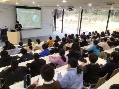 5年1組、2組が社会科の環境について学ぶために、自然観察の森へ出かけました。