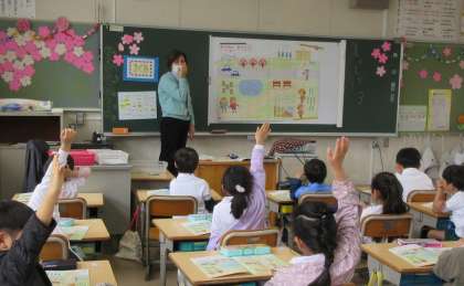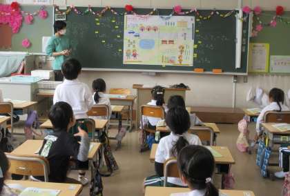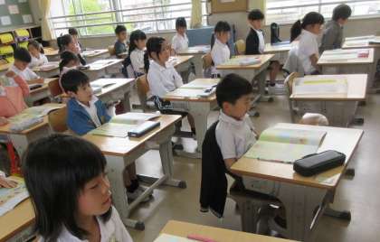 1年生算数の授業です。話の聞き方、手の挙げ方と、みんなで学習する際の学び方も学習していました。今後の成長が楽しみです。