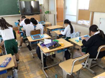 PowerPointを使って自己紹介作りに挑んでいます。出来上がりが楽しみです。