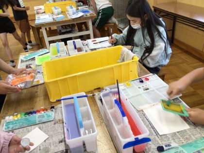 身近にある道具で様々な手法を使いながら、いろいろな模様作りをしました。出来上がりの作品が楽しみです。