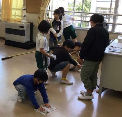 掃除の仕方も板についてきました。すみずみまで綺麗に掃いたり拭いたりしています。