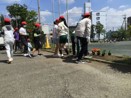 環境委員会による活動 公開日 2024/05/14 更新日 2024/05/14 学校の特色ある活動 5月14日「う」つくしい学校づくりのために、環境委員会が中心となって、花を植える活動をしました。委員会活動で、水やりや草取りなどを行い、大切に世話をしています。