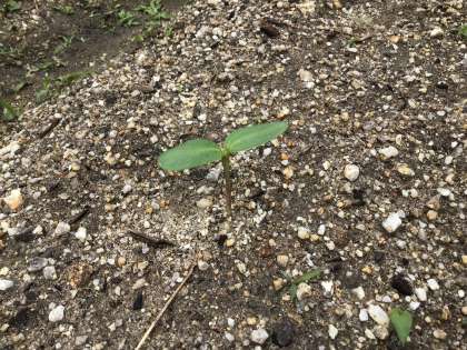 観察した種から芽が出ました。「どんな風に育つかな、どんな花が咲くのかな」と楽しみに水やりをしています。
