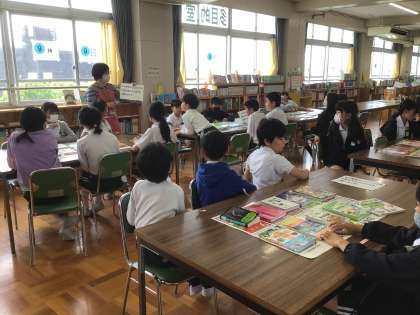 5年生は学校図書館司書さんから、本がどのように分類されているかを学び、調べたい情報が載っている本を探し出す活動に取り組みました。これからもたくさんの本と出会ってほしいと思います。