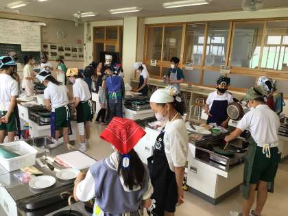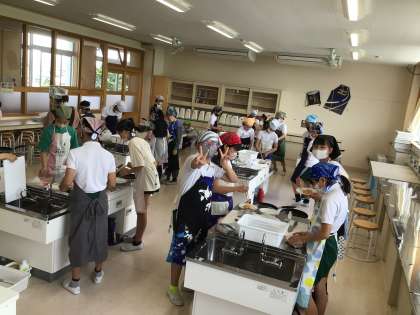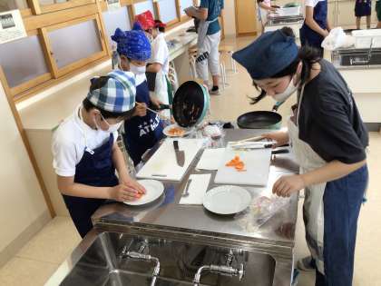 プール掃除をがんばった後、とてもお腹が空いていたようです。どの子も手順通りに作成できたようです。ご家庭でも切り方や材料の購入など、サポートありがとうございました。