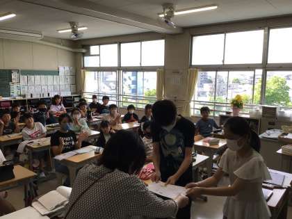 6年 「あいうえお」合言葉賞 公開日 2024/06/03 更新日 2024/06/03 各学年から 校長先生から最高学年がんばり賞をもらいました。縦割り活動やプール掃除など、最高学年としてここまでがんばってきたことを認めてもらいました。1人1枚ひまわりのたね賞もあります。
