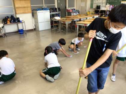 6年 縦割り掃除 公開日 2024/06/03 更新日 2024/06/03 各学年から 先週から縦割り掃除が始まっています。6年生は1年生のお迎えをしたり、他の学年の子たちに掃除のやり方を教えたりするなど、バタバタしながらも優しく接しようとする姿が見られます。縦割り掃除が、6年生の成長のきっかけとなれば嬉しいです。