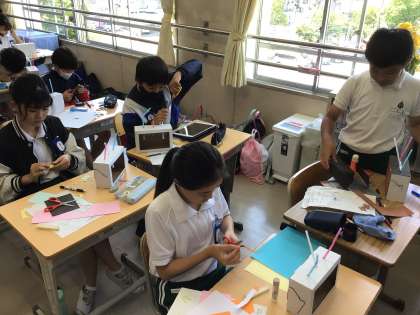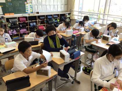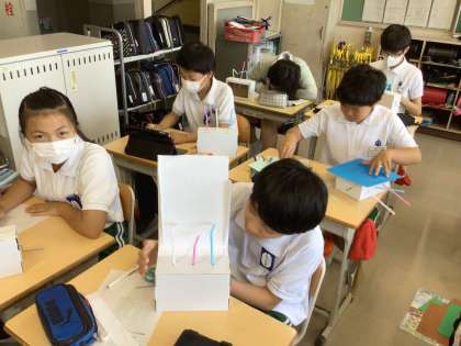 6年 図工の授業「くるくるわくわく」 公開日 2024/06/05 更新日 2024/06/05 各学年から クランクの仕組みを作りました。 どんな動きができるかな。何の動きを表せるかな。 完成が楽しみです。
