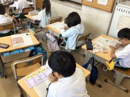 6月17日にある漢字と算数の月例テストに向けて、工夫しながら勉強しています。