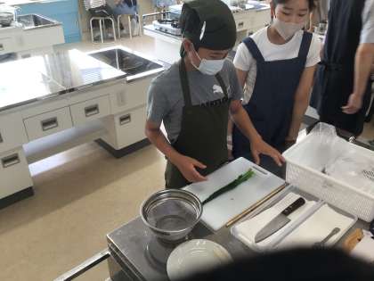 今週も、家庭科室からおいしそうな香りがしてきました。ゆでて切って盛り付けるという、少ない行程で一品のおかずができることに、子どもたちは驚いていました。他の野菜を使って家庭でもおかずを作ってみるとよいですね。