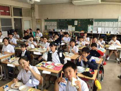 プール後の給食の様子です。みんないい顔をしています。